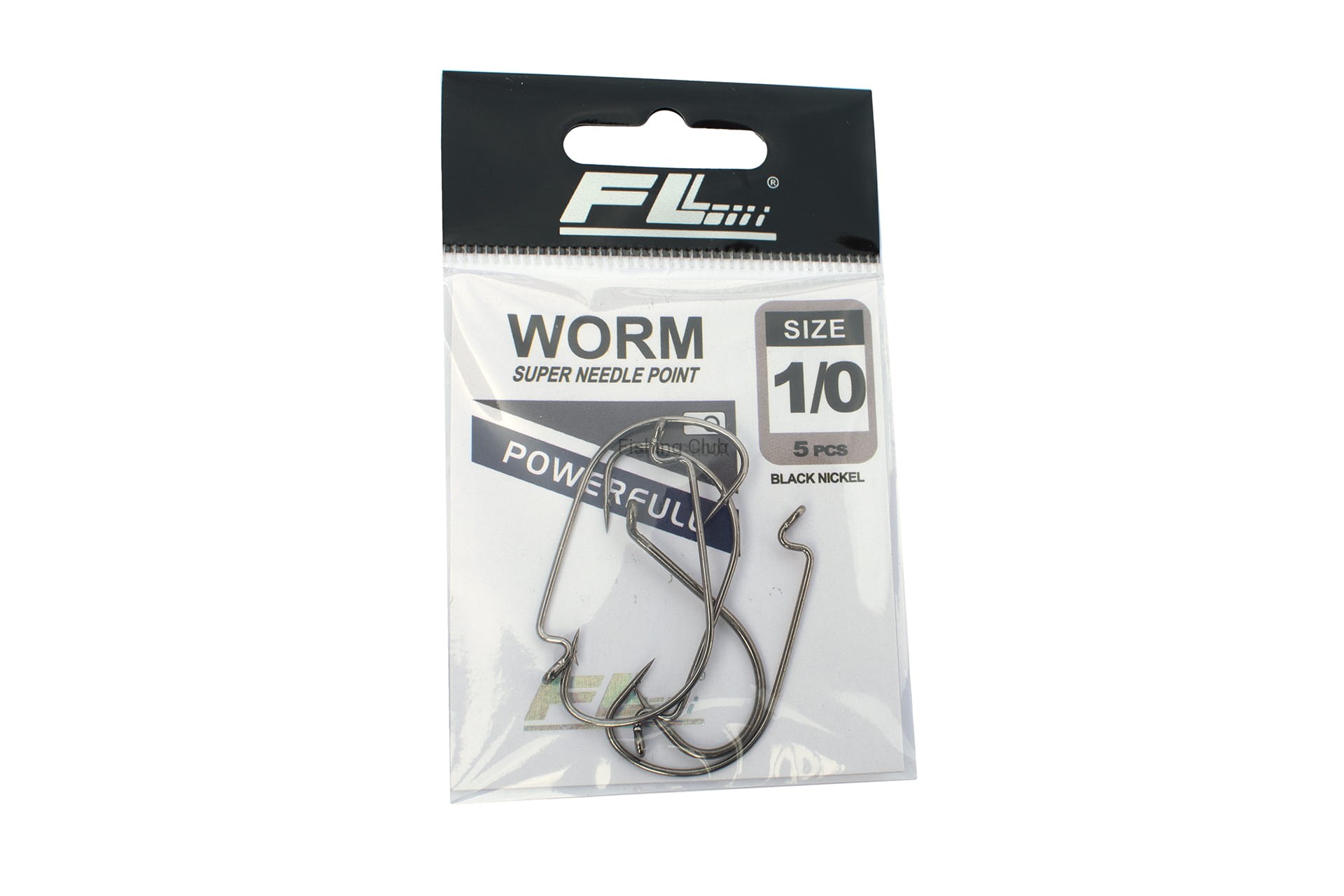 5 kutych haczyków offsetowych nr 1/0 z oczkiem - WORM. Kolor - czarny nikiel.